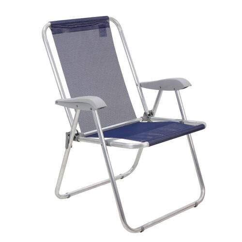 Cadeira de Praia Tramontina Creta Master em Alumínio com Assento Azul Escuro