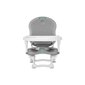 Caracteristicas Portátil: dobrável, leve e compacta. Fácil para transportar com a alça ajustável Segura: fixa na cadeira adulta através de cintas reguláveis, pés antiderrapantes e cinto de segurança de 3 pontos Confortável: Assento com 3 posições de altura e bandeja regulável também com 3 posições diferentes.
