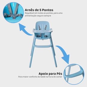 Segurança em Primeiro Lugar: A Cadeira de Refeição Poke é equipada com cinto de segurança de 5 pontos, garantindo que o bebê esteja firmemente seguro durante as refeições. A estrutura robusta e estável proporciona tranquilidade aos pais.