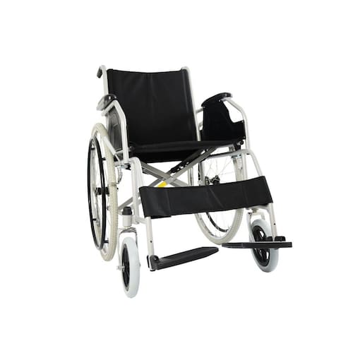 Especificações: - Apoios para braços ergonômicos e confortáveis; - Rodas dianteiras de 8” com pneus maciços a prova de furos; - Aro de propulsão traseiro em alumínio; - Freios bilaterais com alavanca ergonômica funcional; - Chassi tubular robusto em aço carbono com pintura epóxi; - Estofamento acolchoado; - Estrutura dobrável; - Apoios articulados para pés; - Tip-assist aderente: Pedal de apoio para o condutor incorporado no chassi, para auxiliar na transposição de pequenos obstáculos; - Aros reforçados em aço inox; - Design moderno; - Protetor lateral de roupas integrado; - Rodas traseiras de 24” com pneus infláveis; - Tiras de panturrilha; - Facilidade de movimentação em locais de espaço reduzido.