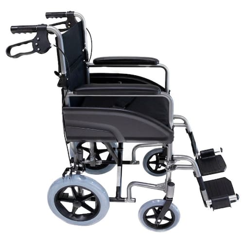 - Estrutura reforçada em alumínio. - Cadeira dobrável em X simples. - Encosto dobrável. - Capacidade de até 100 kG. - Possui bolsa para guardar objetos durante o uso. - Freios bilaterais em alumínios nas rodas traseiras. - Rodas traseiras com aro 12 - Almofada, assento e encosto confortáveis de espuma com revestimento de nylon. - Almofada removível de espuma com capa com zíper. -apoio para os pés removíveis, rebatíveis e articulados com ajuste de altura em 5 níveis de 24 a 34 cm. - Apoio de braço fixos. - Apoio para o calcanhar em nylon. -manoplas em formato anatômico com acionamento fácil dos freios. - Rodas com sistema anti furo em poliuretano. -garfos em alumínio aeronáutico.