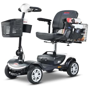 Parâmetros Relacionados: O scooter de mobilidade inclui 1 bateria removível de 12AH. Capacidade máxima de peso de 136 kg. Equipado com pneus sólidos de 23 cm. Pode percorrer 16 km por carga completa e a velocidade máxima pode atingir 8 km/h.