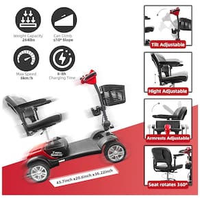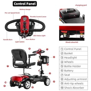 Bateria de Longa Duração: O scooter elétrico Therashieldz de 4 rodas vem com duas baterias de 12V removíveis. Oferece até 18 km de viagem contínua com uma única carga, proporcionando liberdade para explorar com confiança. O scooter também possui um indicador de carga de bateria de fácil leitura, permitindo planejar suas viagens com precisão.