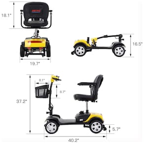 Portabilidade: O scooter de mobilidade pode ser desmontado facilmente em 4 partes, sendo que a parte mais pesada (base do scooter) pesa 27 kg. Pode ser colocado no porta-malas do carro, ideal para viagens.
