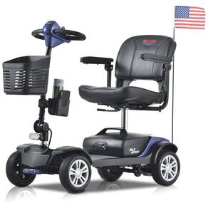 Dimensões do Produto: 120 x 53,5 x 95 cm; 45,5 kg Número do modelo: MAX SPORT BLUE Baterias: 2 baterias de 12V necessárias. (inclusas) Fabricante: Metro Mobility USA LLC Cor:Preta e Azul Marca: Não Informado