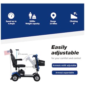 Desempenho Aprimorado - O scooter de mobilidade foi projetado para suportar com segurança até 136 kg. Equipado com duas baterias seladas de 20AH, sua velocidade máxima é de 8 km/h. O alcance pode ser de até 25 km por carga. A distância do solo é de 14 cm e o ângulo de subida é de 10°.