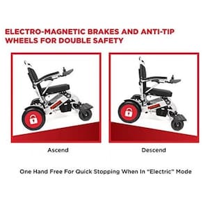 POTÊNCIA IMPRESSIONANTE Equipado com dois motores sem escova de 300 watts, o Quattro XL oferece desempenho excepcional em todos os tipos de terreno, proporcionando torque suficiente para subidas e inclinações. O sistema de freio eletromagnético inteligente aumenta a segurança do passageiro. Além disso, o Quattro XL possui uma opção de roda livre ou neutra, permitindo que seja utilizado como cadeira manual para cuidadores que preferem empurrá-la manualmente.