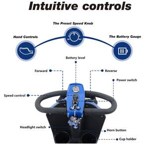 Dimensões do Produto: 111 cm x 52 cm x 92 cm Modelo do Item: MAX PLUS BLUE Fabricante: Metro Mobility USA LLC Cor:Preta e Azul Marca: Não Informado