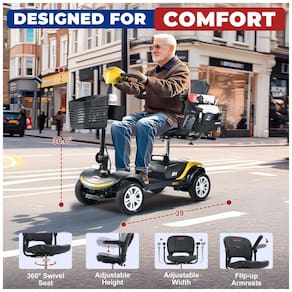 Dimensões do produto: 102,1 x 50,1 x 94,5 cm; 47,6 kg Número do modelo do item: ZNHMS_M1AMARELO Fabricante: Metro Mobility USA LLC Cor:Preta e Amarela Marca: Não Informado