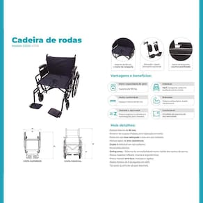 Cadeira de rodas modelo d500 dobrável até 180kg dellamed Registro anvisa: 80795950032. A cadeira de rodas d500 dellamed foi desenvolvida para obesos. Possui estrutura em aço carbono tubular, que a torna super resistente. Unindo conforto e resistência, suporta uso intenso em terreno irregular. Benefícios - suporta até 180 kg. - confortável espaço interno de 60cm. - dobrável fácil transporte, cabe em qualquer porta-malas. - almofada de espuma de alta densidade. Características - espaço interno de 60cm. - protetor de roupas e bolsão para objetos/prontuário. - raios em aço inox reforçado e aros em aço carbono. - pintura epóxi de alta resistência. - duplo x dobrável em aço carbono. - inclui cinto pélvico. - swing-away - sistema de remoção/rebatimento rápido dos apoios de perna. - pneus traseiros infláveis, macios e ergonômicos. - pneus frontais antifuro, maciços e rígidos. - rodas frontais de 8 polegadas em abs. - tip assist auxílio de pé para desnível . Especificações técnicas Medidas caixa axlxc : 92cm x 35cm x 85cm. Aço carbono pintura epóxi - pvc - nylon. Medidas de cadeira dobrada axlxc : 91cm x 32cm x 85cm. Altura do assento do piso: 50cm. Largura e profundidade do assento: 62cm x 46cm. Espaço livre do apoio para os pés ao piso: ajustável. Altura do encosto das costas: 45cm. Altura entre apoio para os braços e o assento: 26,5cm. Comprimento do apoio para os braços: 26cm. Diâmetro externo do aro de propulsão: 51cm. Diâmetro externo da roda traseira: 60cm - 24. Diâmetro externo da roda dianteira: 20cm - 8. Capacidade: 180kg. Peso liquido: 28,5 kg. Peso bruto: 30 kg. Itens incluso 01- estrutura reforçada de aço carbono tubular em duplo x dobrável. 01- encosto impermeável com bolso para documentos. 01- assento impermeável. 01- almofada com espuma de alta densidade. 01- cinto de segurança. 02- protetores laterais de roupas. 02- apoios de braços acolchoados. 02- rodas traseiras 24 com pneus rígidos. 02- freios bilaterais reguláveis. 02- garfos dianteiros em aço com 2 níveis de ajuste. Garantia Garantia de 01 ano diretamente com o fabricante.