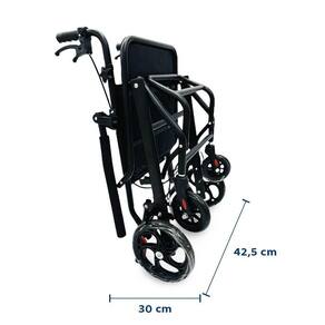 Seu design dobrável e sistema de fechamento frontal tornam o transporte e o armazenamento mais fáceis, ocupando menos espaço. O encosto em nylon garante leveza e ventilação, enquanto os apoios de braços rebatíveis e acolchoados aumentam o conforto do usuário.