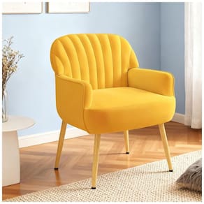 Esta cadeira decorativa estofada em veludo da Holiway é uma poltrona individual com design contemporâneo, indicada para sala de estar, quarto, recepção de escritório, biblioteca e áreas de espera. O encosto em formato de concha e o assento amplo oferecem apoio para costas e braços, favorecendo o conforto em uso prolongado para leitura, trabalho ou momentos de pausa.