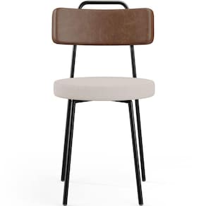 Revestimento do encosto em Couríssimo na cor Marrom e do assento em Linho na cor Bege, com acabamento semi brilho.