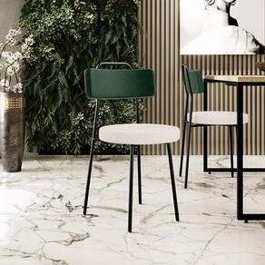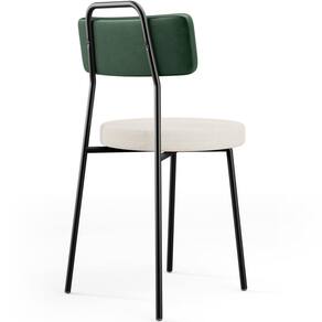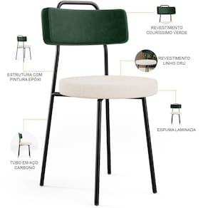 Revestimento do encosto em Facto na cor Verde Musgo e do assento em Linho na cor Cru, com acabamento semi brilho.