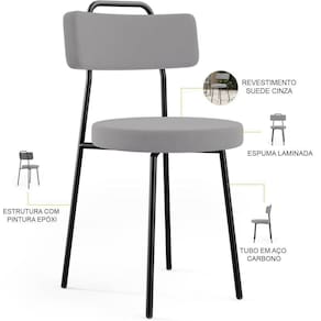 Amplamente moderna, dispondo de muito realce e design singular, a Cadeira Decorativa Estofada Para Sala De Jantar Barcelona L02 Suede Cinza - Lyam Decor vem com a personalidade e elegância que sua decoração merece! Estruturada em aço carbono, contrasta lindamente com o encosto e assento estofados, cabe mencionar ainda seu revestimento em Couríssimo, é confeccionada por materiais de excelente qualidade, extremamente resistentes e aconchegantes.