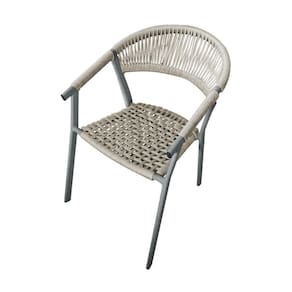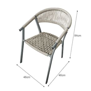 Cadeira Decorativa Joana Em Corda Náutica E Base Em Alumínio Cinza-areia - Cor: Bege