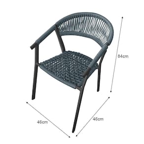 Cadeira Decorativa Joana em Corda Náutica e Base em Alumínio Preta/cinza