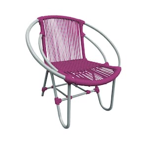 Cadeira Decorativa Julia Em Corda Náutica E Base Em Alumínio Cinza/rosa - Cor: Rosa