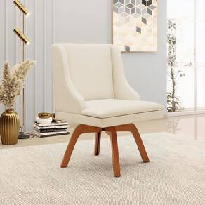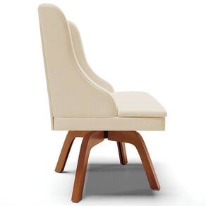 Cadeira Decorativa Sala De Jantar Base Giratória De Madeira Firenze Linho Bege/natural G19 - Gran Belo