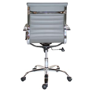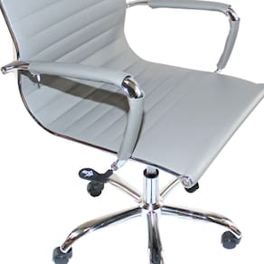 A Cadeira Giratória Charles Eames Esteirinha possui um misto de design e conforto, compondo um escritório super charmoso e confortável. O assento e o encosto em couro P.U. e os braços fixos (não possuem regulagem de altura) também são revestidos em PU garantindo maior durabilidade.