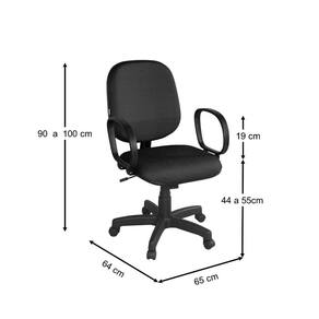 Base giratória com relax e regulagem de altura com sistema a gás. Assento e encosto injetado e anatômico e tapeçado em tecido J. Serrano. Base e Braço na cor preta.