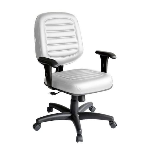 Cadeira Diretor  para Escritório Gomada e com Braços com ajuste de altura  Branco Linha Blenda – Tonalidade da Cor: Branco   -   Marca: Design Office Móveis  - Modelo: Cadeira Diretor  para Escritório Gomada e com Braços com ajuste de altura   A Cadeira Diretor para Escritório Gomada e com Braços com ajuste de altura  da marca Design Office Móveis, foi projetada para proporcionar conforto e bem estar, tornando o dia-a-dia mais agradável. Utilizado para compor diversos tipos de ambientes a Linha Blenda da marca Design Office Móveis são modelos de cadeiras para escritório, empresas, home office, residências e comércio, com medidas avantajadas, ergonômicas e confortáveis, que se diferenciam de modelos de cadeiras para escritório convencionais existentes no mercado, de fabricação nacional com qualidade e garantia de 1 ano, direcionado para: Escritório , empresas, comércios, home office,residências, escolas, ambientes corporativos e empresas em geral.   A Cadeira é entregue totalmente montada, sem a necessidade de qualquer montagem adicional, é só tirar da caixa e sentar-se.    Dimensões: Largura do assento: 49,0 cm Profundidade do Assento: 49,0 cm Largura do Encosto: 46,0 cm Altura do Encosto: 48,0cm Altura do chão ao topo do assento: mínimo/máximo 48,0/58,0 cm altura  Peso da cadeira: 20kg Estrutura da Cadeira: Estrutura Giratória com Braços com ajuste de altura Mecanismo da Cadeira: Regulagem de altura do assento através do pistão a gás, e sistema de inclinação através do mecanismo relax que é quando o sistema inclina o encosto juntamente com o assento, que é a inclinação total da cadeira, auxiliando na ergonomia e no conforto do usuário, e através da mesma manípula de acionamento de relax, você pode travar na posição desejada quando desejar, após encontrar a posição perfeita é só pressionar para trás a alavanca (sentido para dentro do assento) que a cadeira irá travar na posição desejada.   Marca: Design Office Móveis   Revestimento do Assento e Encosto: Material Sintético Garantia: 12 Meses/1 ano cobrindo defeitos de fabricação.  **Medidas aproximadas, podendo haver variações**   Observações Importantes: As medidas descritas nesse anúncio são aproximadas podendo sofrer pequenas variações sendo maiores ou menores.   As cores das fotos do produto são meramente ilustrativas, a tonalidade da cor pode sofrer alterações sendo mais clara ou mais escura.   Ao receber a mercadoria efetuar a conferência. Confira as dimensões do produto e certifique-se de que passará normalmente por elevadores, portas, escadas ou corredores de sua residência.