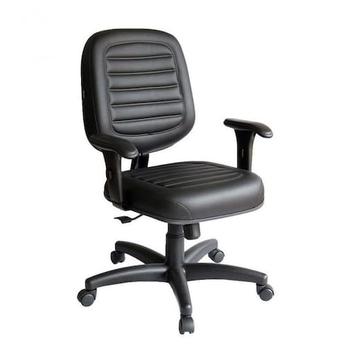 Cadeira Diretor para Escritório e Home Office sendo encosto revestido com gomos costurados em couríssimo preto Cor: Preto - Tonalidade da Cor: Preto- Marca: Design Office Móveis