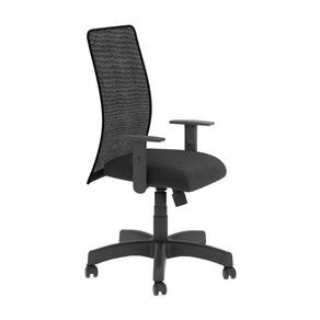 Base giratória cromada com relax e regulagem de altura com sistema a gás. Assento em tecido Space e encostos em tela super resistente preta Base e braço cromados.