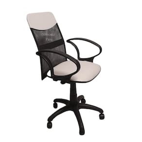 Cadeira Diretor - braço fixo - estrutura do encosto em aço, revestida em tecido tela com faixa e detalhe em corano - assento em madeira reflorestada - espuma injetada, revestida em couro sintético e bordas em pvc flexivel, mecanismo relax , que permite o inclinamento do encosto, base estrela em nylon com rodizio - regulagem de altura a gás. Marca: Sintonia Flex