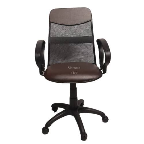 Cadeira Diretor - braço fixo - estrutura do encosto em aço, revestida em tecido tela com faixa e detalhe em corano - assento em madeira reflorestada - espuma injetada, revestida em couro sintético e bordas em pvc flexivel, mecanismo relax , que permite o inclinamento do encosto, base estrela em nylon com rodizio - regulagem de altura a gás.