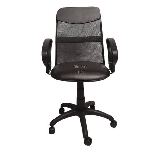 Cadeira Diretor - braço fixo - estrutura do encosto em aço, revestida em tecido tela com faixa e detalhe em corano - assento em madeira reflorestada - espuma injetada, revestida em couro sintético e bordas em pvc flexivel, mecanismo relax , que permite o inclinamento do encosto, base estrela em nylon com rodizio - regulagem de altura a gás.