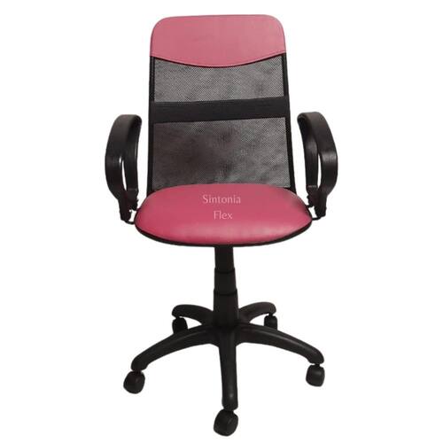 Cadeira diretor tela giratória com faixa - mecanismo relax - braço fixo corano pink Cadeira Diretor - braço fixo - estrutura do encosto em aço, revestida em tecido tela com faixa e detalhe em corano - assento em madeira reflorestada - espuma injetada, revestida em couro sintético e bordas em pvc flexivel, mecanismo relax , que permite o inclinamento do encosto, base estrela em nylon com rodizio - regulagem de altura a gás. Marca: Sintonia Flex