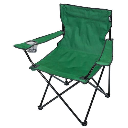 Especificações Material: Poliéster Oxford 420D Estrutura: Tubos de aço com pintura epoxi Cor: Verde Incluso: Bolsa para transporte Possui: 2 braços e 1 porta-copos Itens Inclusos Cadeira Dobrável Em Poliéster Verde Com Braço Porta Copos e Bolsa Transporte Kala Perguntas Frequentes (FAQ) Pergunta: Qual o material da estrutura da cadeira?