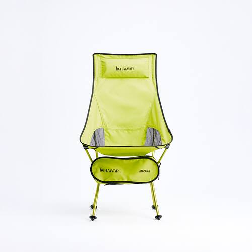 Modelo: Moon ChairPeso suportado: até 125 kgMedidas: 88 x 56 x 68 cmPeso: 1,2 kgMaterial: Alumínio 6013 e tecido Oxford 100% poliésterCor: Verde Limão e Preto