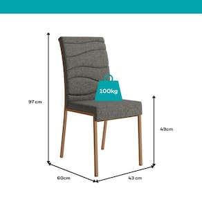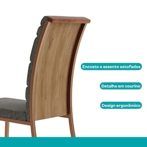 Com design moderno e versátil, se adapta a diferentes estilos de decoração e proporciona um abiente sofisticado. Ideal para uso diário, possui encosto e assento estofados que proporcionam uma experiência confortável à mesa. Com estrutura resistente e capacidade para até 100kg, é a escolha perfeita para quem busca conforto ergonômico aliado a um design refinado.