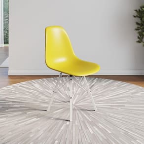 ATENÇÃO AS IMAGENS SÃO MERAMENTE ILUSTRATIVAS E PODEM SOFRER VARIAÇÕES DE COR E PEQUENOS DETALHES DE ACORDO COM O SEU MONITOR, ILUMINAÇÃO DO AMBIENTE E ATÉ MESMO A SUA PERCEPÇÃO VISUAL.Cadeira Eames Estilo Moderno em Ferro Branco com Assento Amarelo