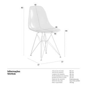 Material do assento: Policarbonato - Material da base: Aço Inox polido - Altura do assento: 44 cm - Largura do assento: 46 cm - Profundidade do assento: 40 cm - Distância entre os pés: 37 cm - Peso suportado: 130 kg - Garantia: 3 meses.