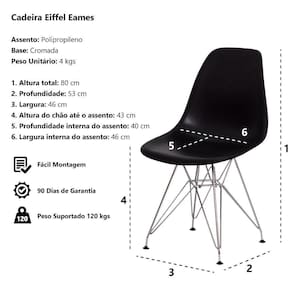 Modelo: Cadeira Eiffel Eames Preta Base Cromada