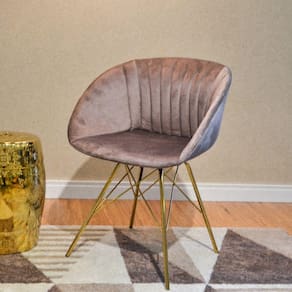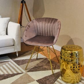 As peças com metais dourados estão super em alta no mundo do design, além do veludo que também é uma tendência muito forte para os estofados. A Cadeira Eleonora combina estes dois atributos e garante uma pela elegante e funcional para seu dia a dia! Cadeira fixa para utilização em ambientes internos, não possui apoio para braços, possui encosto para as costas, assento estofado com estrutura em polipropileno (PP) e revestido em tecido aveludado. Possui base fixa em aço cromado na cor dourada. Acabamento da Estrutura: Cromada Almofada do assento: Fixa Altura do assento até o chão: 48.5000 Ambiente Principal: Sala de Jantar codigo_ean: 7908308737242 Complexidade da Montagem: Baixa: pode ser montado por uma pessoa sozinha Cor: Camurça Cor do Produto: Camurça Dobrável: Não Enchimento do Assento: Espuma D-24 Enchimento do Encosto: Espuma D-24 Escala de Brilho: Semi-Brilho Estrutura do Encosto: Polipropileno Giratória: Não Informações Complementares: Cadeira fixa para utilização em ambientes internos, não possui apoio para braços, possui encosto para as costas, assento estofado com estrutura em polipropileno (PP) e revestido em tecido aveludado. Possui base fixa em aço cromado na cor dourada. Itens Inclusos: 1 Cadeira, Kit Ferragens e Manual de Montagem Linha ou Coleção: Cadeiras Manual de Montagem e Instalação: https://product-hub-prd.madeiramadeira.com.br/831611/documents/10926716-3ac1-4ca2-ada1-7cc07ef9184c1202177manualeleonoraaj06.pdf Necessita Montagem: Sim Origem do Produto: Importado Peso: 5,6 kg Possui Apoio para Braços: Não Possui Apoio Para os Pés: Não Possui Rodízio: Não Recomendações de Uso, Manutenção e Limpeza: Uso interno. Não expor ao sol ou umidade. Não exceder a capacidade de peso. Limpar com pano macio umedecido em solução de água e sabão neutro e secar em seguida. Não utilizar produtos químicos ou abrasivos. Sistema de Montagem: Encaixe e parafusos Tipo de Assento: Fixo Tipo de Encosto: Fixo