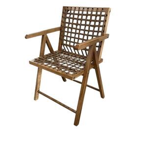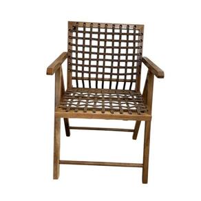 Cadeira em Madeira com Corda Náutica e Apoio de Braços Castanho -