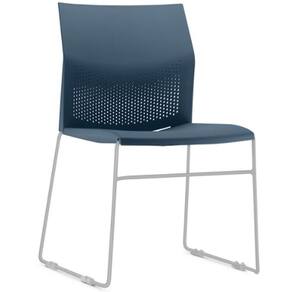 Material do encosto e assento injetado em Polipropileno (PP), na tonalidade Azul.