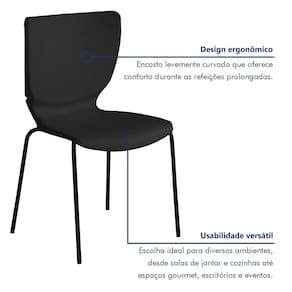 Receber bem nunca foi tão prazeroso! Nosso conjunto de cadeira une conforto, estilo e durabilidade para transformar seus momentos à mesa em verdadeiras experiências. Com encosto ergonômico, ela proporciona o suporte ideal para as costas, perfeita para longas refeições e boas conversas. Seu design se adapta facilmente a diversos estilos de decoração, do clássico ao contemporâneo. Produzida com materiais de qualidade e tratamento anti UVA, resiste ao tempo e à exposição solar sem perder a cor ou o charme. Ideal para quem busca sofisticação e bem-estar em todos os detalhes. Qual o benefício de uma cadeira com encosto confortável? Mais apoio para as costas e conforto prolongado à mesa. Qual a vantagem da cadeira com estrutura tubular? A base tubular oferece durabilidade e um visual moderno. Acabamento da Estrutura: Pintura Altura do assento até o chão: 43 cm Altura Máxima dos Pés: 43.0000 Ambiente: Cozinha Ambiente Principal: Cozinha codigo_ean: 7898428335544 Cor: Preto Cor: Preto Cor do Produto: Preto Dobrável: Não Escala de Brilho: Semi-Brilho Estrutura do Assento: Polipropileno Estrutura do Encosto: Polipropileno Giratória: Não Informações Complementares: Por se tratar de produto injetado, pequenas variações de tonalidade de cor são intrínsecas ao produto, e não podem ser consideradas defeito. Para aprimoramento de projeto, os produtos podem sofrer modificações. Itens Inclusos: 1 Cadeira Linha ou Coleção: Mono Manual de Montagem e Instalação: https://cdn2.madeiramadeira.com.br/atributo/prima-design/1102525-170a.pdf Marca: Prima Design Material da Base: Aço Material Principal: Aço Necessita Montagem: Não Origem do Produto: Nacional Peso: 3,6 kg Possui Apoio para Braços: Não Possui Rodízio: Não Quantidade de Itens: 1 Recomendações de Uso, Manutenção e Limpeza: A estrutura deve ser limpa utilizando pano seco de algodão ou flanela. Se necessário, utilize panoumedecido apenas com água, secando o móvel em seguida.Não utilize solvente, álcool, acetona, lustra móveis, produtos abrasivos e outros produtos que contenhamsoda e ou ácidos para limpar e tirar manchas dos móveis.Não expor os móveis à luz solar e ambientes com umidade relativa elevada.Manter a estrutura metálica limpa, utilizando pano seco ou cera a base de silicone. Tipo de Assento: Fixo Tipo de Encosto: Fixo Marca: Não Informado