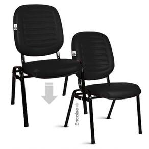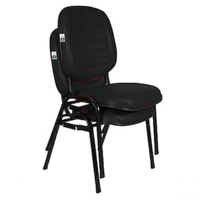 Cadeira Empilhável Gomada para Igrejas Evangélicas Linha Holy com gancho lateral para encaixe - Tonalidade da Cor do Assento e Encosto: Preto - Marca: Design Office Móveis - Revestimento do Assento e Encosto: Material Sintético