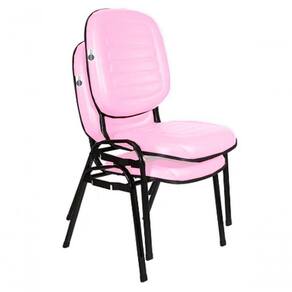 Cadeira Empilhável Gomada para Igrejas Evangélicas Linha Holy com gancho lateral para encaixe - Tonalidade da Cor do Assento e Encosto: Rosa Claro - Marca: Design Office Móveis - Revestimento do Assento e Encosto: Material Sintético