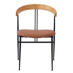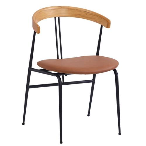 O assento revestido em um tom terroso acolhedor convida ao conforto, enquanto o encosto curvo em madeira clara adiciona um elemento natural e um contraste visual interessante. A combinação destes materiais e formas resulta em uma peça com personalidade e estilo.