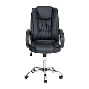 Modelo: Cadeira Escritório Boss Presidente Preta Assento: Madeira Revestida com Espuma e Acabamento em PU Base: Aço Cromado