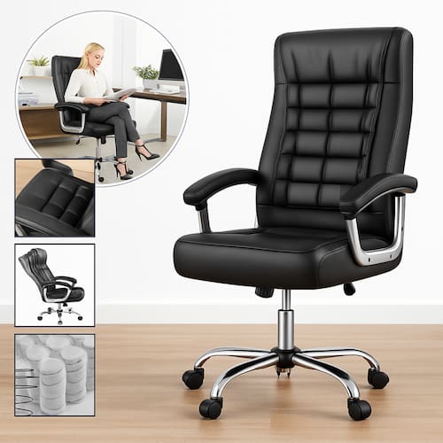 Fácil de Limpar: O revestimento em PU é prático e mantém a cadeira com aparência de nova.