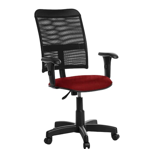 Cadeira de Escritório Giratória com Encosto em Tela Mesh com Braço Ideal para ambientes como: Escritórios, Corporativo, Home Office, Consultórios, etc. Especificações: Revestimento: Cor do Revestimento: Vermelho. Tipo de Revestimento: Crepe. Malha: 100% Poliéster; Composição Química: Polímero pertencente ao grupo de resinas sintéticas; Detalhamento do Assento: Espuma Injetada de Poliuretano; Largura 460 mm X Espessura 42 mm X Profundidade 420 mm; Detalhamento do Encosto: Estrutura em aço Preta e Tela Mesh; Com regulagem de altura; Largura 450 mm X Espessura 20 mm X Altura 540 mm; Componentes da Base Giratória: Flange em Aço Preta; Estrela em Aço com Capa Preta; Rodízios em Nylon; Pistão a gás Preto, permite regulagem da altura; Base possui raio externo de 285 mm, raio útil de 282,5 mm; Dimensões e Peso montado: Altura do assento referente ao piso, miníma 420 mm, máxima 530 mm; Altura do topo do braço referente ao piso, mínima 590 mm, máxima 710 mm; Peso aproximado: 12 kg; Peso suportado: 110 kg Uniformemente Distribuídos; Dimensões da Caixa: Largura 590 mm X Profundidade 580 mm X Altura 200 mm; Componentes Inclusos: 01 Assento Executivo; 01 Encosto em Tela Executivo; 01 Suporte de Encosto com Capa Preto; 01 Pistão com Capa Preta; 01 Estrela em Aço com Capa Preta; 05 Rodízios em Nylon Preto; 02 Braços Reguláveis Pretos; Parafusos para montagem ¼ Philips; Manual de Montagem. Montagem: A montagem deve ser realizada pelo cliente seguindo o manual de montagem. : 180 dias contra defeitos de fabricação, previstos em Lei; Obs: Pode haver variação de tonalidade referente ao lote do revestimento e a resolução de Computadores e Smartfones.