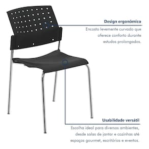 Linda e colorida, prática e confortável. A Cadeira Movie foi desenvolvida para ambientes corporativos como escritórios e salas de reuniões, mas nada impede que ela fique linda naquele cantinho da sua casa. Tipo de Encosto: Fixo Escala de Brilho: Semi-Fosco Produto Montado: Não Acabamento da Estrutura: Não se Aplica Altura do assento até o chão: 46.0000 Ambiente: Escritório Ambiente Principal: Escritório codigo_ean: 7898428330471 Cor: Preto Cor: Preto Cor da Base: Cromado Cor do Produto: Preto Empilhável: Sim Encosto Reclinável: Não Estrutura do Assento: Polipropileno Estrutura do Encosto: Polipropileno Giratória: Não Informações Complementares: Por se tratar de produto injetado, pequenas variações de tonalidade de cor são intrínsecas ao produto, e não podem ser consideradas defeito. Para aprimoramento de projeto, os produtos podem sofrer modificações. Itens Inclusos: 1 Cadeira KIT: Não Linha ou Coleção: Movie Manual de Montagem e Instalação: https://cdn2.madeiramadeira.com.br/atributo/prima-design/1102509-550a.pdf Marca: Prima Design Necessita Montagem: Não Origem do Produto: Nacional Peso: 3,8 kg Possui Apoio para Braços: Não Possui LED: Não Possui Massagem: Não Possui Regulagem de Altura de Assento: Não Possui Regulagem de Altura do Encosto: Não Possui Rodízio: Não Quantidade de Itens: 1 Quantidade do Produto: 1 Recomendações de Uso, Manutenção e Limpeza: A estrutura deve ser limpa utilizando pano seco de algodão ou flanela. Se necessário, utilize pano umedecido apenas com água, secando o móvel em seguida.Não utilize solvente, álcool, acetona, lustra móveis, produtos abrasivos e outros produtos que contenham soda e ou ácidos para limpar e tirar manchas dos móveis.Não expor os móveis à luz solar e ambientes com umidade relativa elevada.Manter a estrutura metálica limpa, utilizando pano seco ou cera a base de silicone. Suporta Até (kg): 120 kg Tipo de Assento: Fixo Tipo de Cadeira de Escritório: Cadeira Coletiva Tipo de Mecanismo da Cadeira: Sem Mecanismo Marca: Não Informado