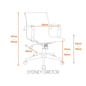 A cadeira Sydney Diretor é toda em tela com aço cromado. A tela garante resistência e conforto para quem estiver usando, além de também possuir seus braços revestidos, para que a pele não entre em contato com o metal direto. Ela possui o sistema relax para que seja marromhor para seus usuários, travando na vertical, ou balançando de acordo com o movimento do corpo. Acabamento da Estrutura: Não se Aplica Almofada do assento: Altura do assento até o chão: 49 Ambiente Principal: Escritório Apoio para Braços Estofado: Braço com Ajuste de Altura: Não Complexidade da Montagem: Média: pode ser montado por mais de uma pessoa e/ou necessite de maior conhecimento para montagem Cor: Cinza Cor da Base: Cromado Cor do Produto: Cinza Dobrável: Empilhável: Não Enchimento do Assento: Enchimento do Encosto: Encosto Reclinável: Sim Escala de Brilho: Fosco Estrutura do Assento: Aço Estrutura do Encosto: Aço Giratória: Sim Informações Complementares: Itens Inclusos: 1 Cadeira, Kit Ferragens e Manual de Montagem Linha ou Coleção: Sidney Diretor Manual de Especificação Técnica: Manual de Montagem e Instalação: https://cdn2.madeiramadeira.com.br/atributo/fratini/1115697-cadeira-sidney-presidente-diretor-ref-230-ref-231.pdf Material da Base: Aço Necessita Montagem: Sim Origem do Produto: Importado Peso: 10.15 Possui Apoio para Braços: Sim Possui Apoio Para os Pés: Possui LED: Não Possui Rodízio: Sim Recomendações de Uso, Manutenção e Limpeza: Utilizar um pano úmido Revestimento do Assento: Tela Especial Revestimento do Encosto: Tela especial Rodízio com Trava: Sistema de Montagem: Concha, Par de Braços, Revestimento dos Braços, Flange, Pistão, Anel, Rodizio, Kit de Parafusos e Chave de Parafusos Suporta Até (kg): 120 Tipo de Assento: Regulável Tipo de Encosto: Regulável Tipo de Madeira Maciça: